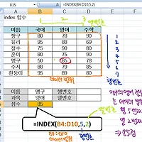 ->기준범위를 지정한 다음 이 범위에서 원하는 위치만큼 떨어져 있는 셀값, 또는 셀범위를 구하는 함수
